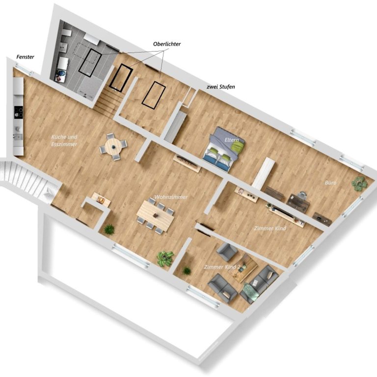 Die dargestellten Pläne, einschließlich der 3D-Ansichten von Küche und Bad, dienen nur der beispielhaften Darstellung. Abweichungen von der tatsächlichen Ausführung sind möglich.