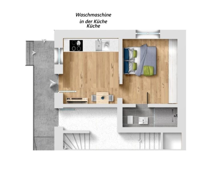 Die dargestellten Pläne, einschließlich der 3D-Ansichten von Küche und Bad, dienen nur der beispielhaften Darstellung. Abweichungen von der tatsächlichen Ausführung sind möglich.